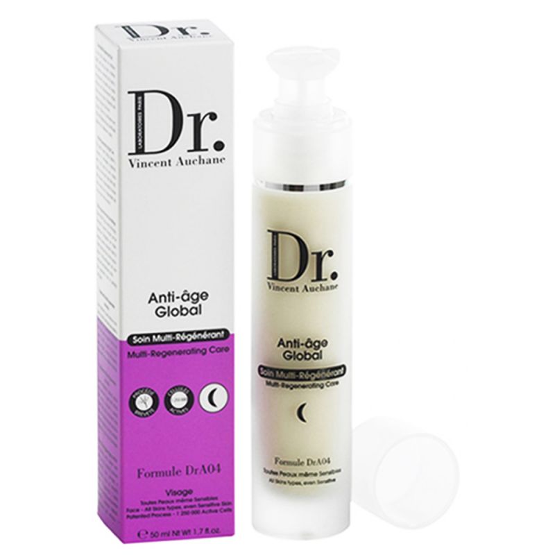 Dr.Vincent Auchane Multi-Regenerating Care Anti-Age (Night) ساخت کشور: فرانسه – تقویت عملکرد بازسازی سلولی – خاصیت آنتی اکسیدانی – خاصیت لایه برداری ملایم – مقاوم تر، درخشان تر و صاف تر شدن پوست – پر شدن چروک ها و منافذ پوست توسط عمل میکروفیلینگ – این محصول قابل استفاده برای انواع پوست حتی پوست های حساس در ناحیه صورت و گردن می باشد.